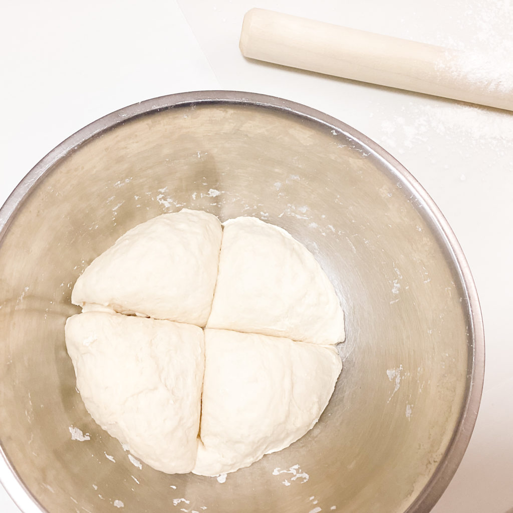 <2>生地がまとまりなめらかになるまで捏ねたら、生地を丸め、