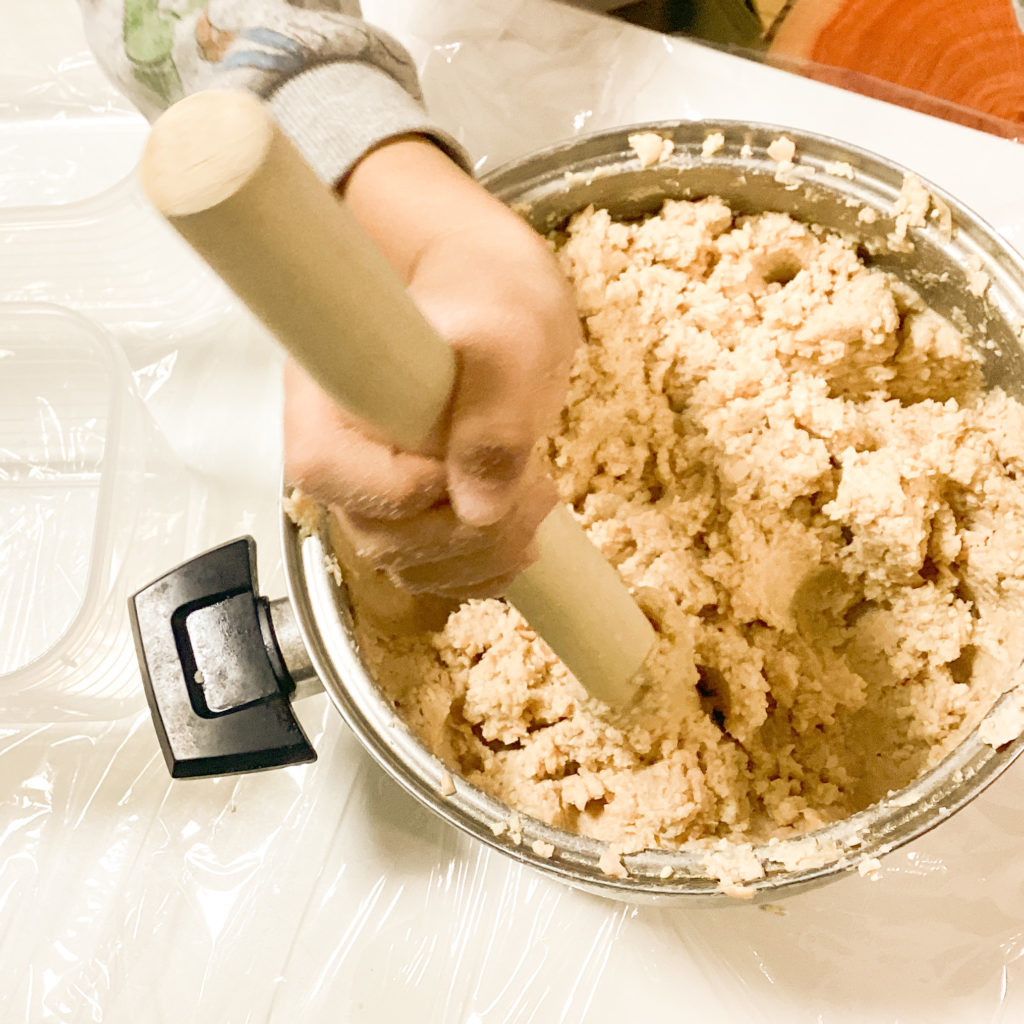 多少大豆の粒が残っている味噌が好きな方は粗めに、粒がない味噌が好きな方は細かくつぶしてください。