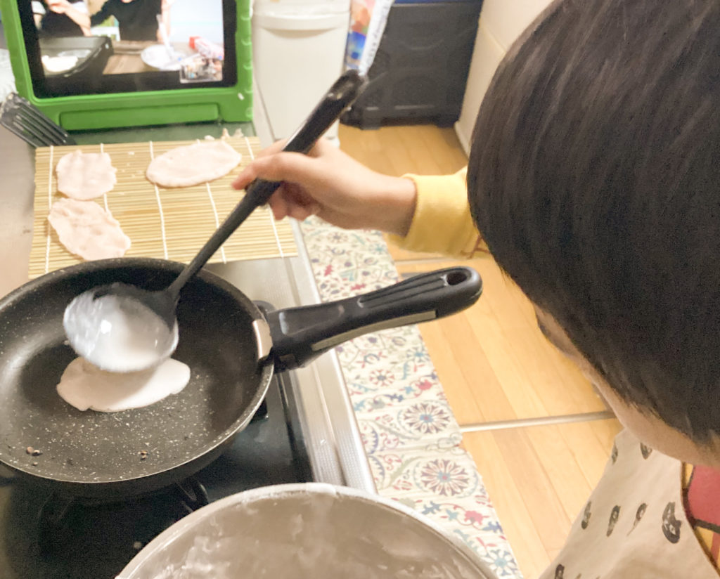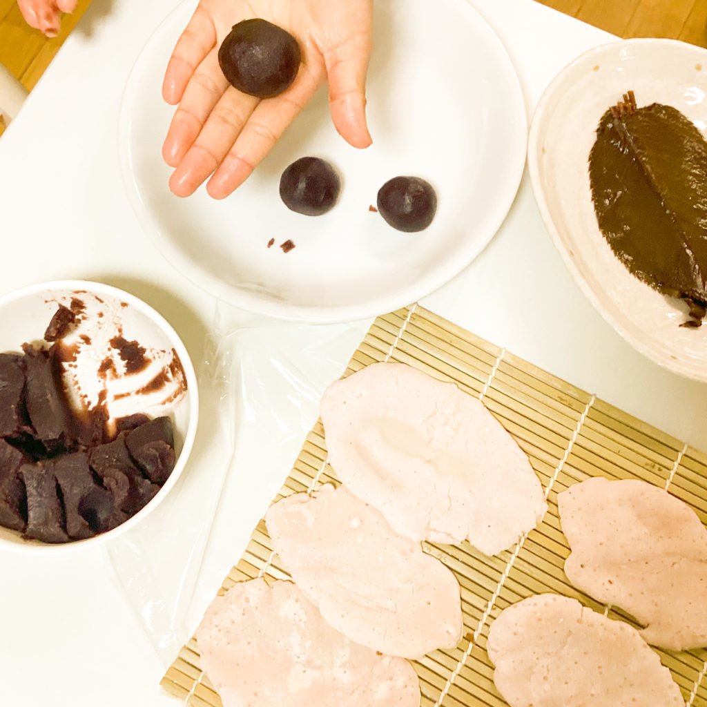 桜餅作りを親子向けにオンラインレッスンしました。