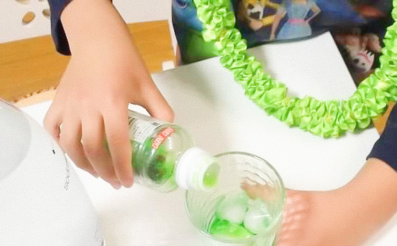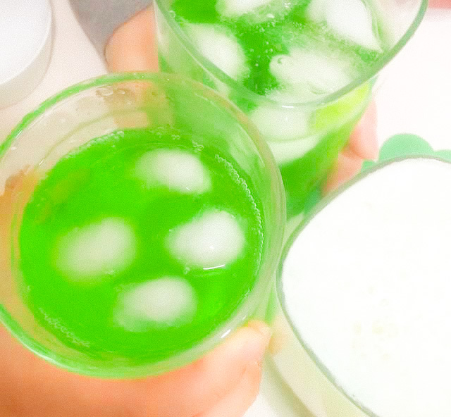 子どもは炭酸水と合わせ、メロンソーダにして、乾杯しました!