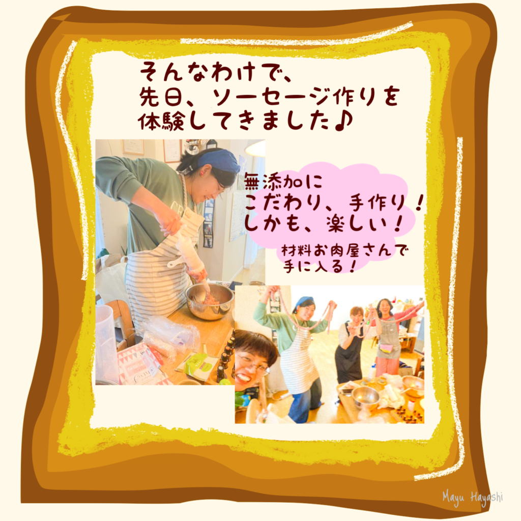 先日、無添加にこだわって、ソーセージ作り体験をしました。