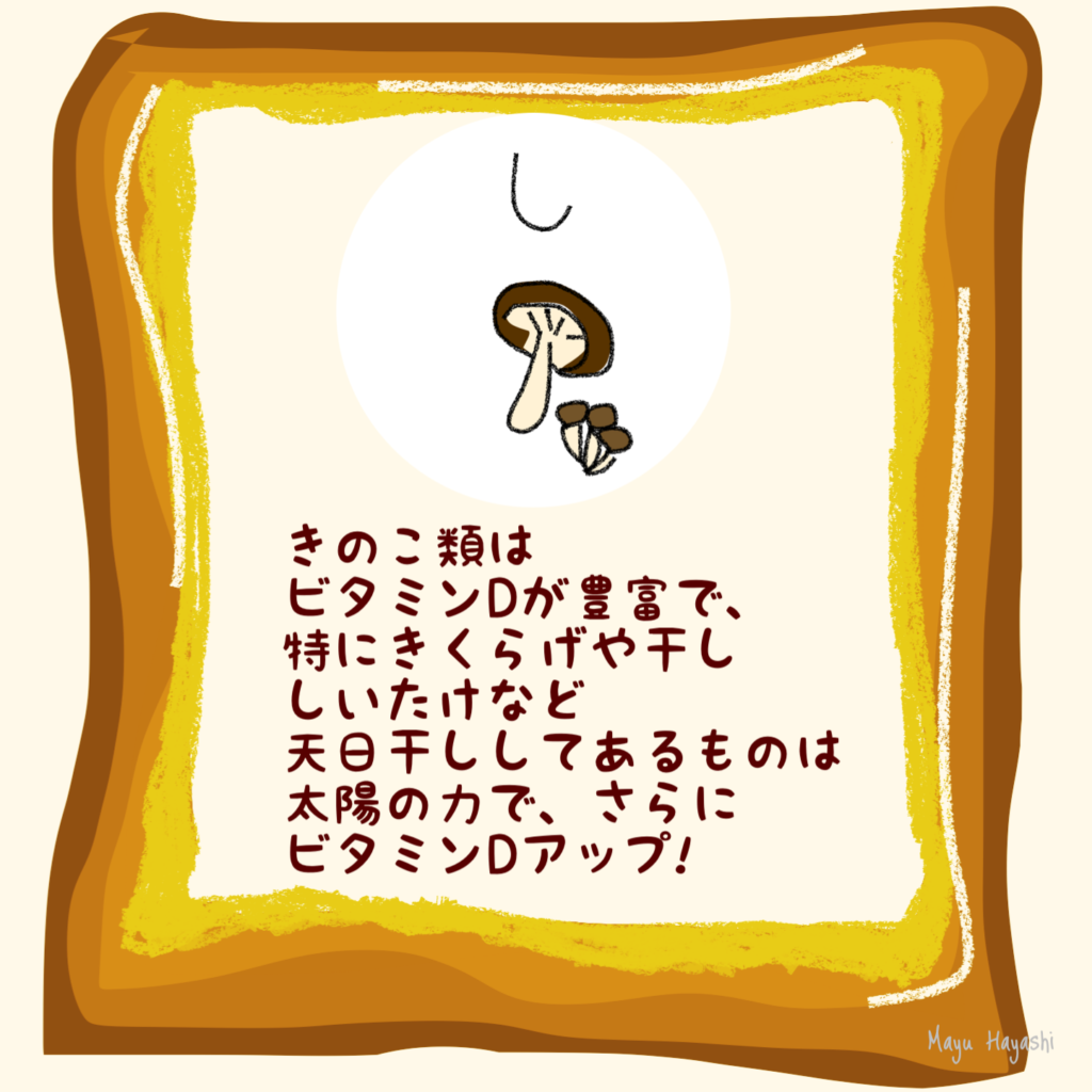 特に干ししいたけやキクラゲはビタミンDが豊富でカルシウムの吸収率を高め、