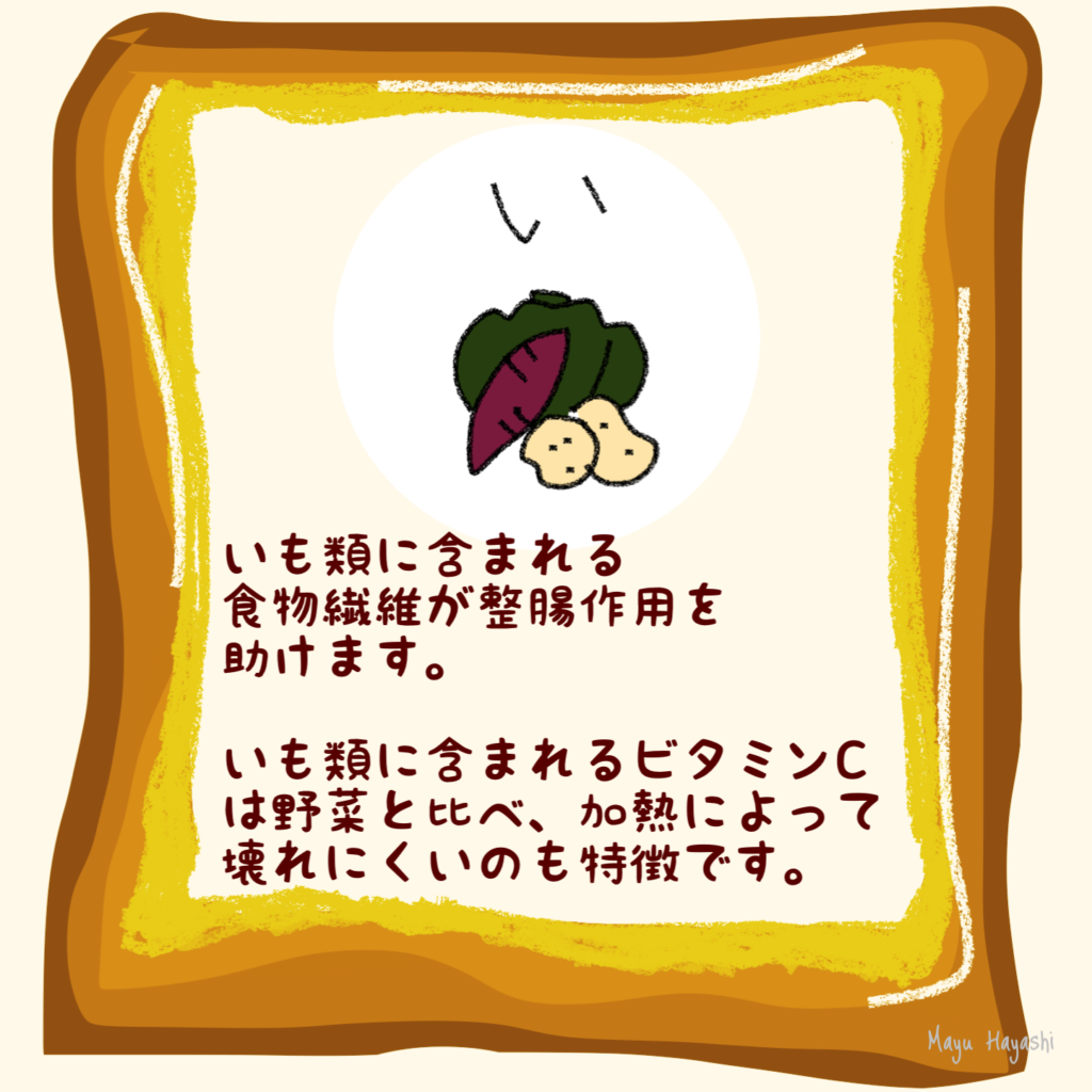 芋類に含まれるビタミンCは、野菜に比べて加熱によって壊れにくいのも特徴です。