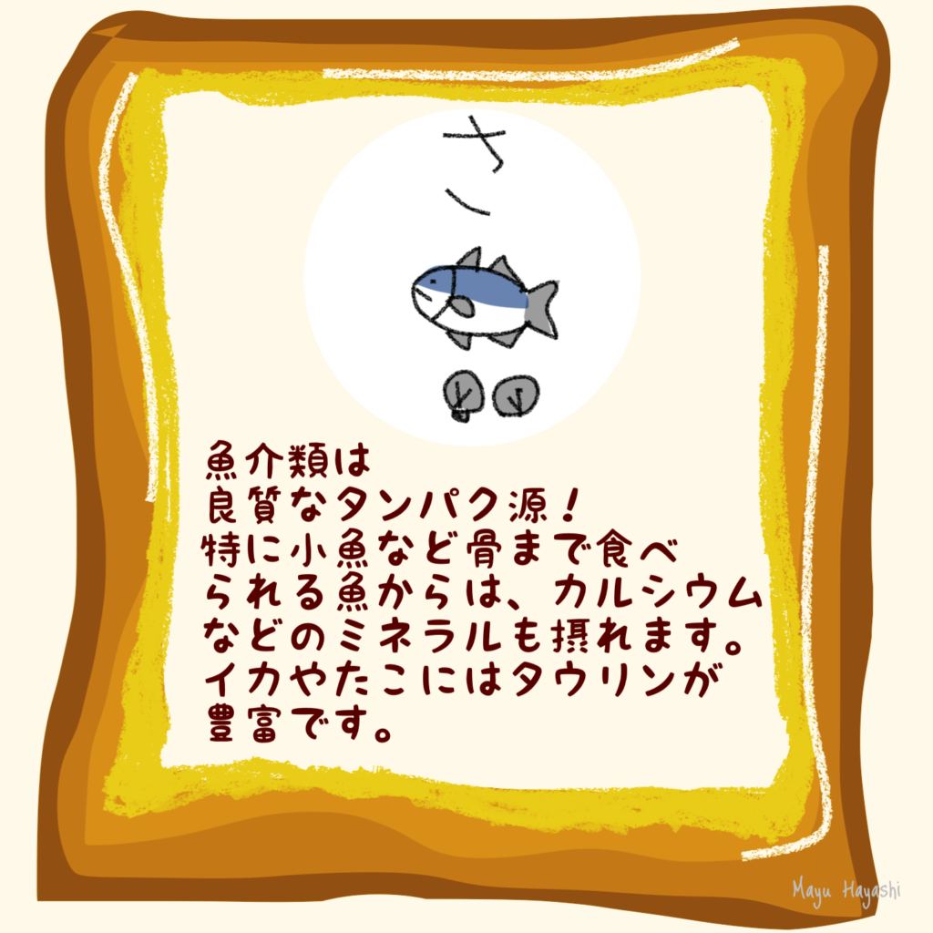 小魚などは骨ごと食べれるため、カルシウムなどのミネラルも摂ることが出来ます。