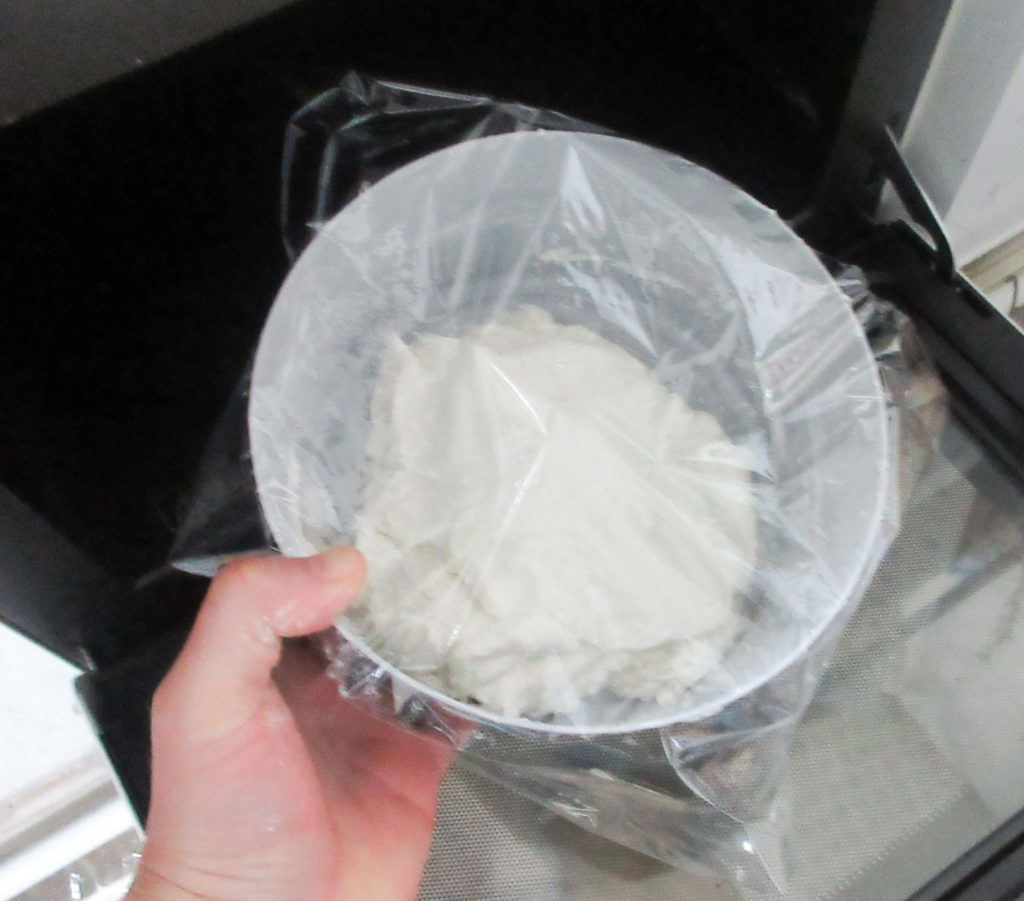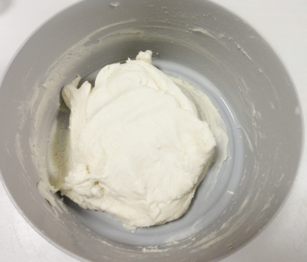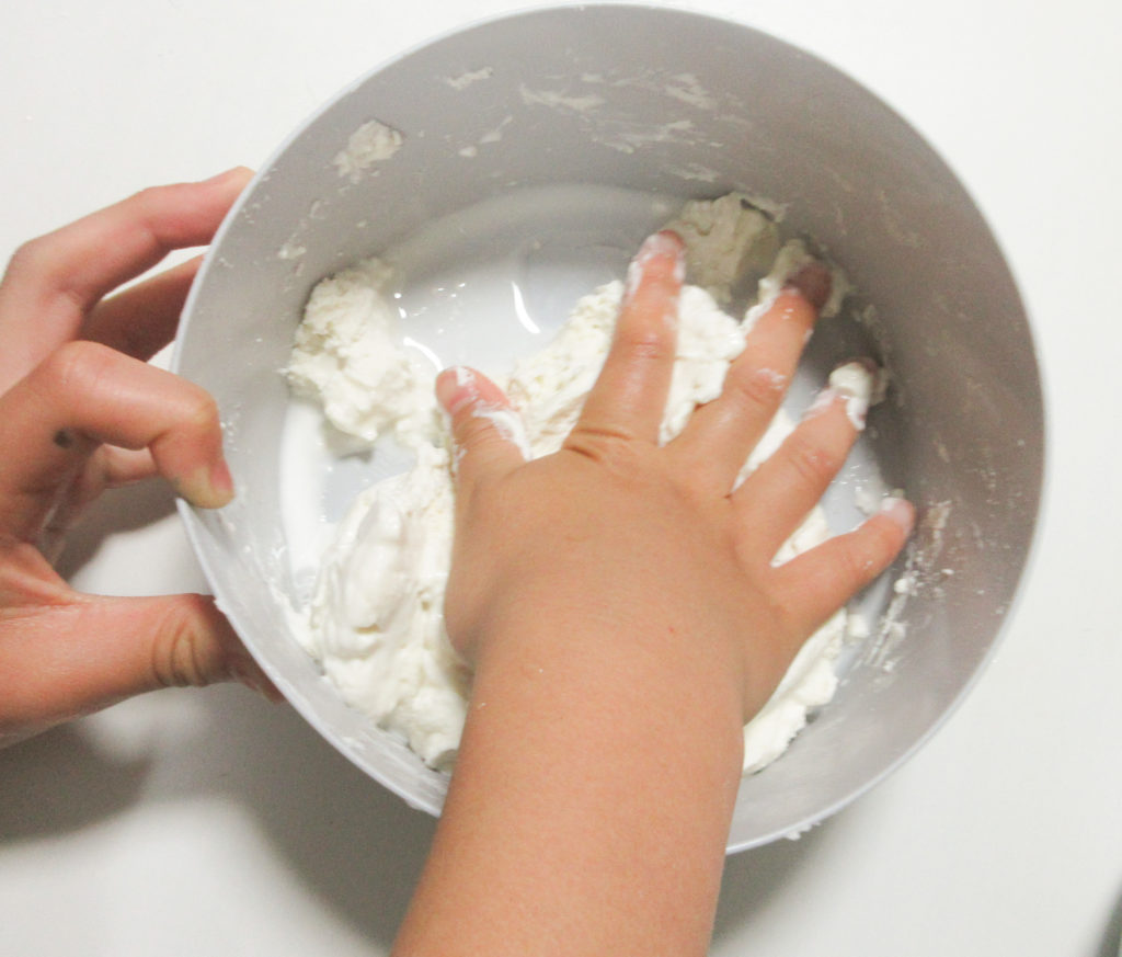 加熱後に混ぜる時は麺棒などの器具を使うか、軍手に衛生手袋を重ねてこねるなどしてください。