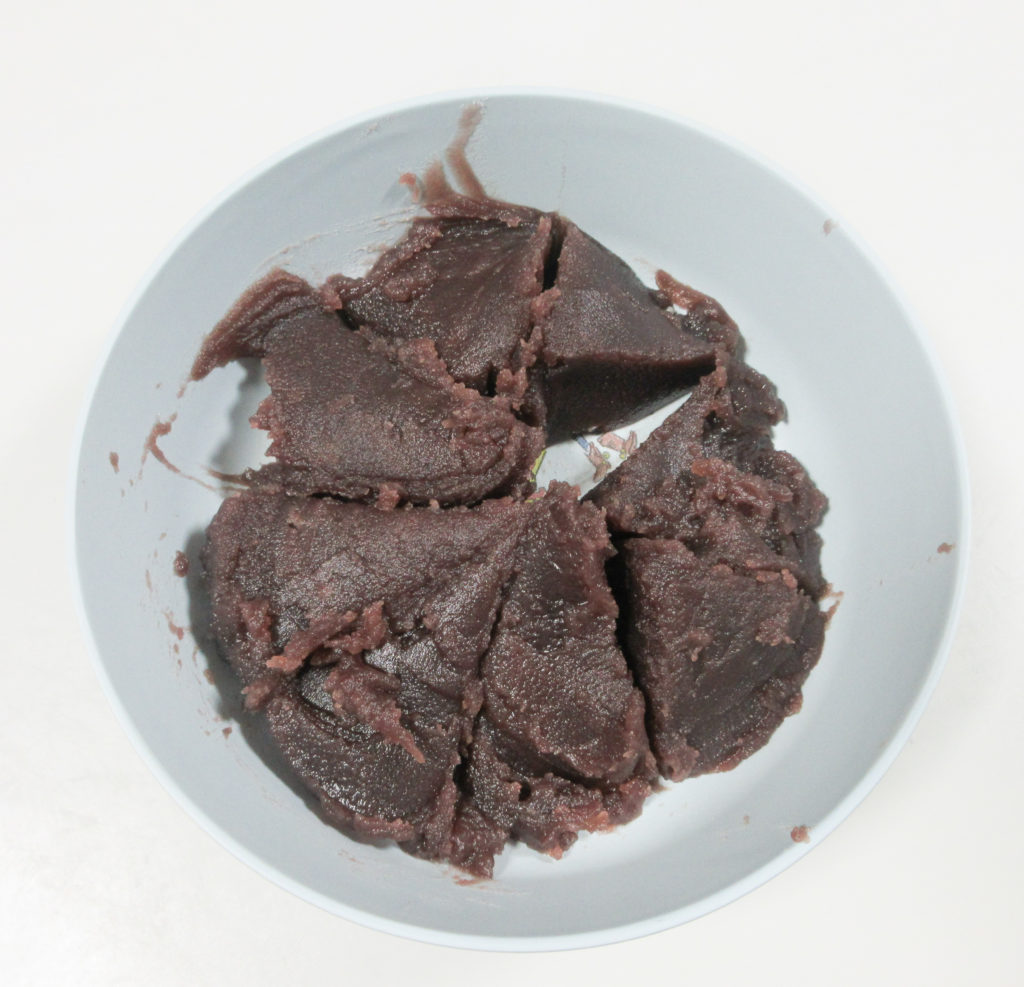 <6>5再び加熱後、全体を混ぜ合わせ、全体につやっとして色が変わったら、8等分する