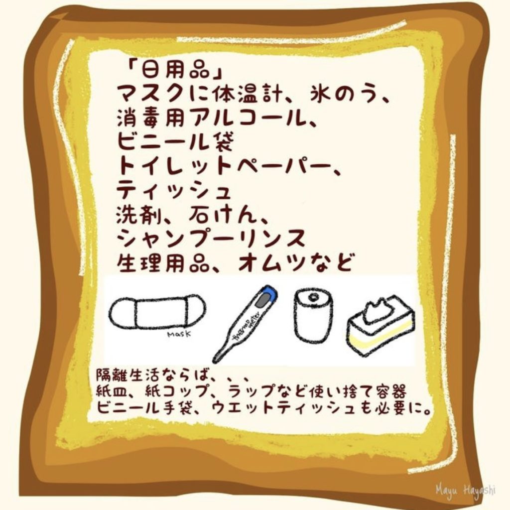 病院での自宅療養にも備え、体温計や氷のう、消毒用アルコール、