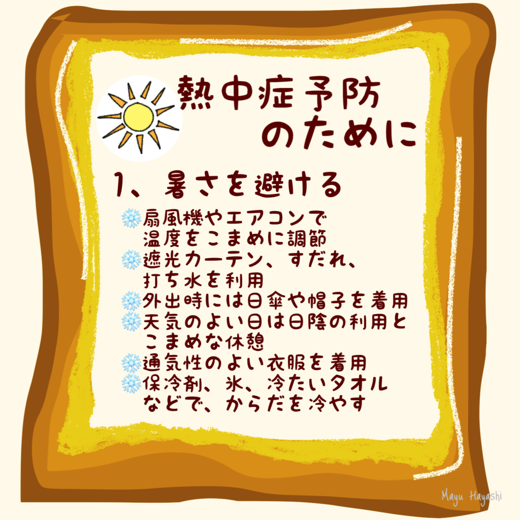 暑さを避ける、外出や屋外での運動や作業をやめるようにも呼びかけられています。