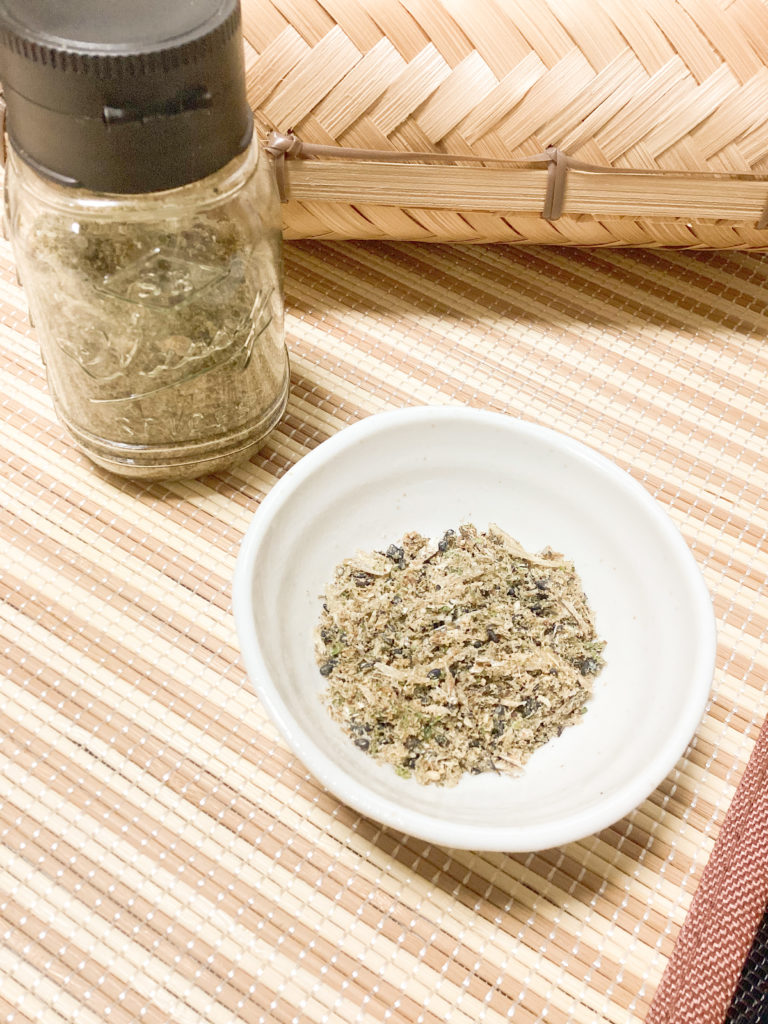 青のり、ごま、桜海老、アーモンド、乾燥野菜、天日塩など。