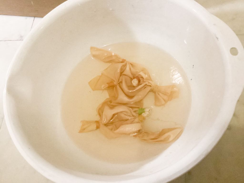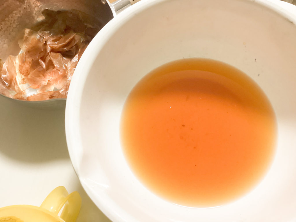 水8Lに玉ねぎの皮20gを30分から1時間煮出していく。