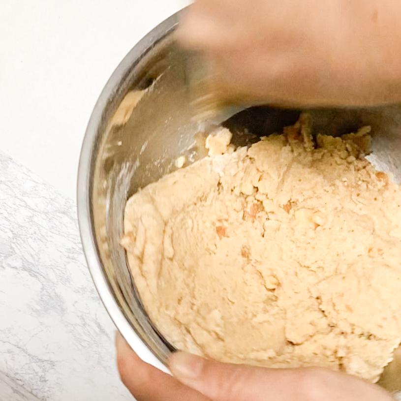 2)1がまとまったら平たく伸ばし、冷凍庫で20分くらい生地を休ませる。