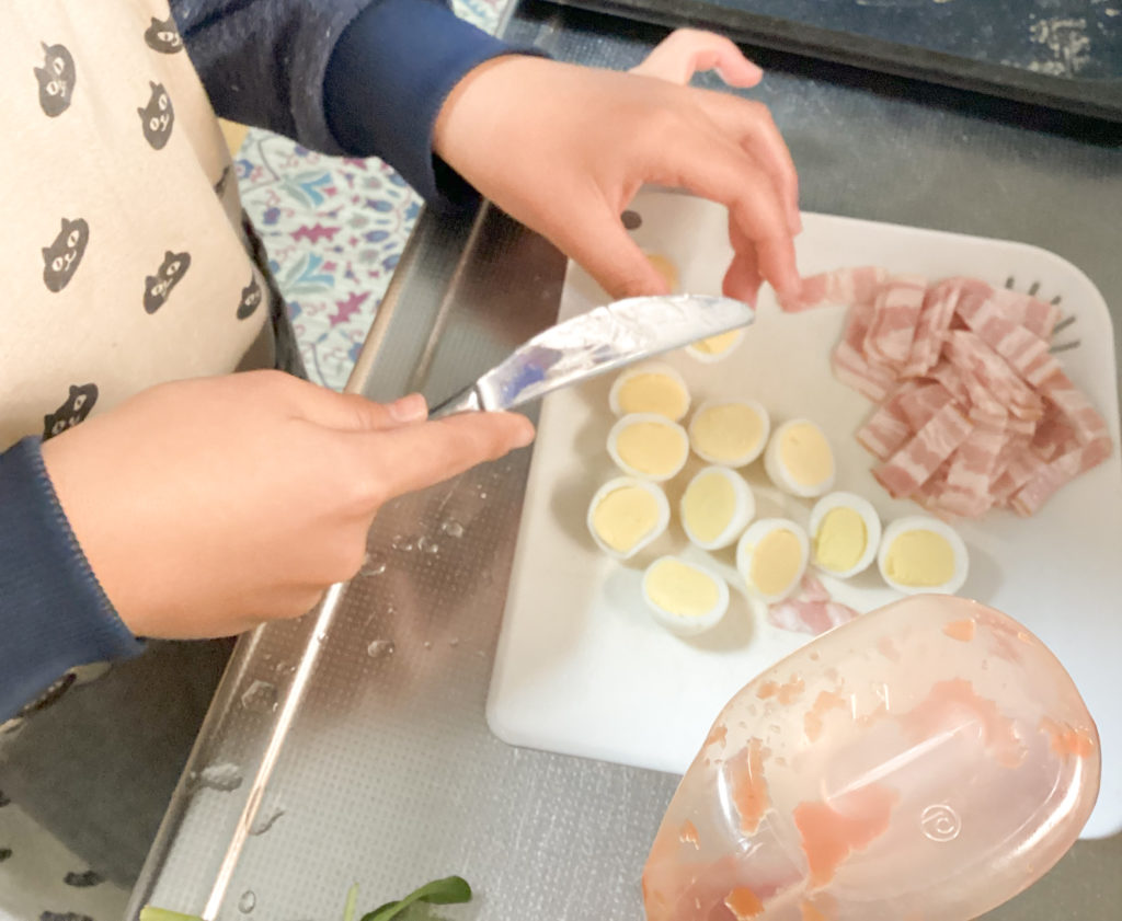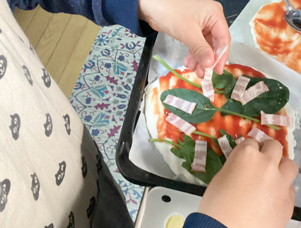 ウインナー、ベーコン、ハム、玉ねぎ、ピーマン、トマト、