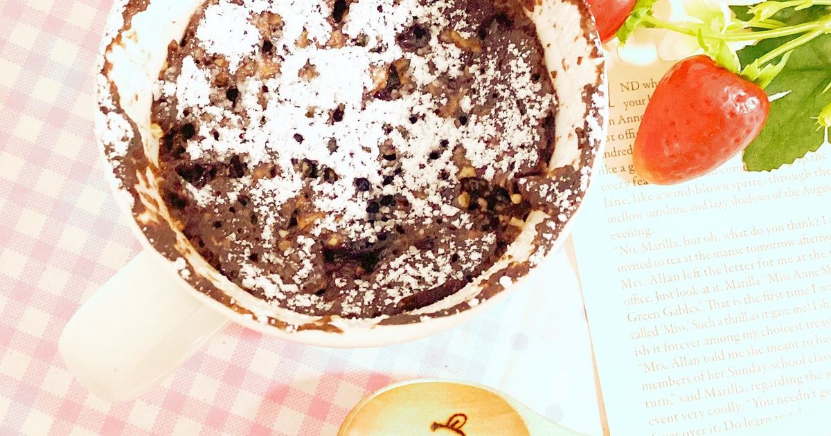 豆腐、米粉、ココア、ベーキングパウダーをマグカップに入れてよく混ぜて、