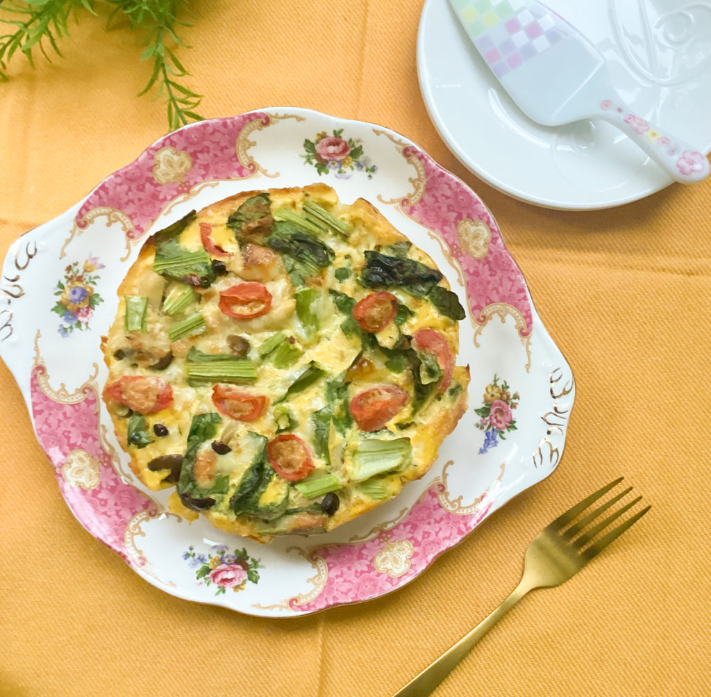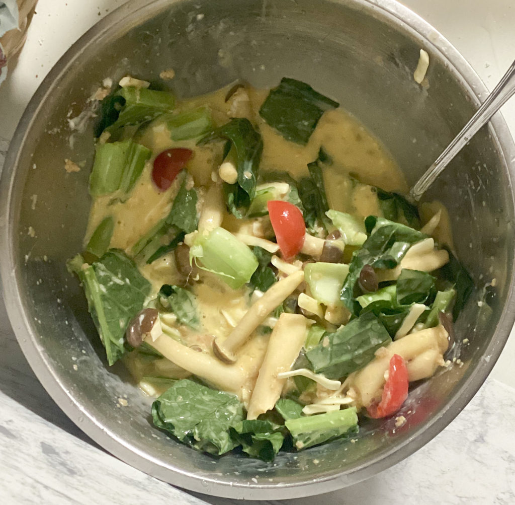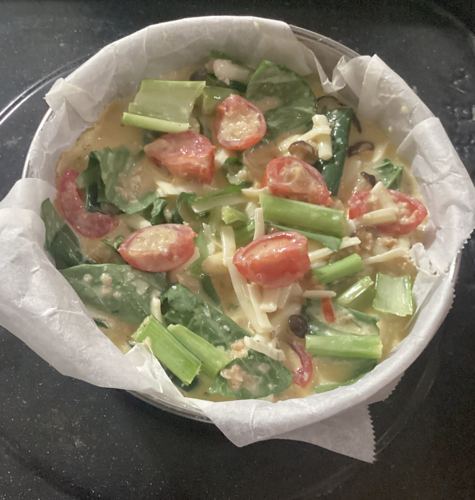 今回の写真のキッシュの具は、小松菜、しめじ、ミニトマトになります。