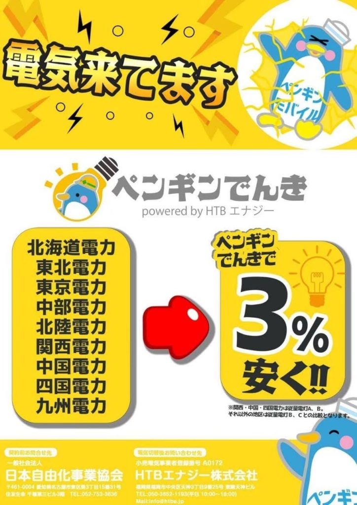 ペンギン電気、ガスにして3%も安くすることが出来たら、、、