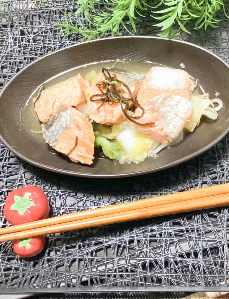 「鮭の酒蒸し」の作り方。シリコンスチーマーで楽々! 材料: 鮭、酒、塩昆布